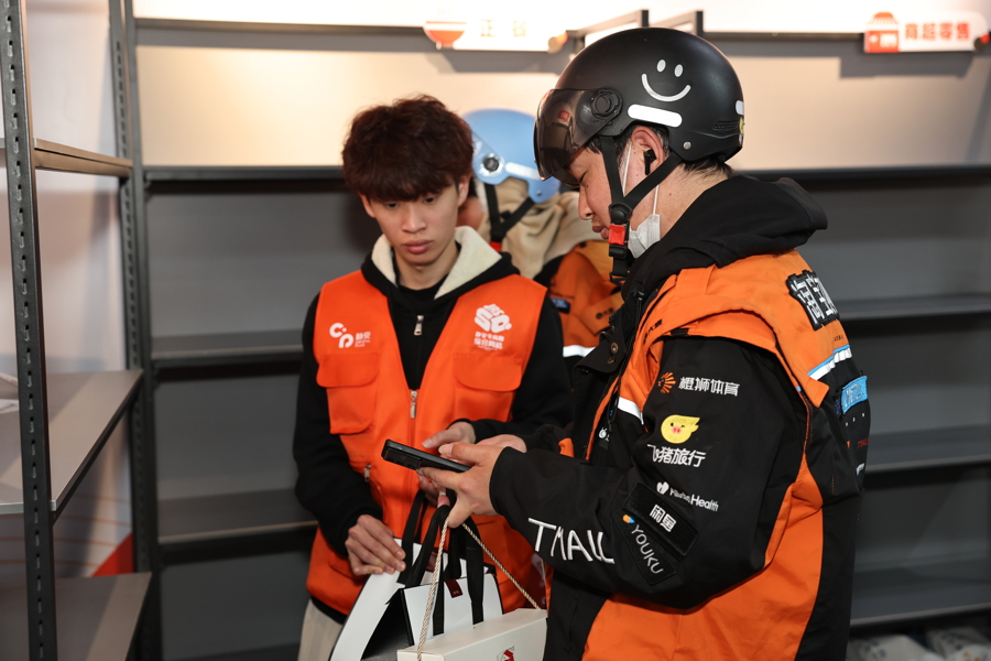 记者现场看到,依托这一站点,原本由一名骑士“一送到底”模式调整为“分段接力”。“最难100米”的配送流程被重新梳理为三步:下单后,由场内“一段骑士”专人专区直送将订单从商户送至接力站;站内进行集中存放、分类摆放、有序交接;再由“二段骑士”接力配送,送达写字楼等终端。