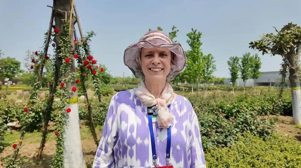 图为世界月季联合会秘书长马伽·魏尔。在马伽看来,南阳是名副其实的“世界月季名城”。“南阳是一座绿意葱茏的城市。这里绿植繁茂,植被种类丰富,道路两旁的林木与月季交相辉映,同样美不胜收,令人称赞。”她说,南阳用一朵花、一棵树、一片绿,向世界展示了一座中国城市的生态之美与人文温度。“我听说南阳种植了15.5万亩16亿株月季,这太了不起了。”苏希尔这样感叹。他说,南阳不仅是一座绿意盎然、市民友善的美丽城市,更因为漫山遍野的月季,而成为值得专程探访的地方。“我认为南阳月季产业的价值与意义十分重大。”他说。月季饮品、月季面膜、月季文创、月季鲜花饼……在南阳,月季不再只是城市里的“颜值担当”,更成为实打实的经济引擎。“值得关注的是,南阳正在大力推广各类月季衍生产品。”苏希尔认为,从一朵花到一条产业链,南阳正以月季为媒,向世界展示一座中国城市的美丽与智慧。举报/反馈