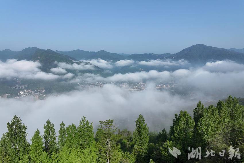 当日,雨后初晴,保康县出现云海景观,山峦、县城在云海中若隐若现,美若画卷。